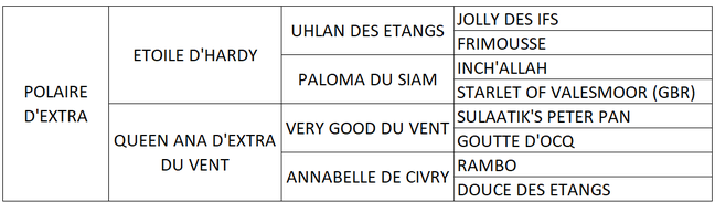Sa mère : Queen Ana d'Extra du Vent s'est consacrée exclusivement à la reproduction.